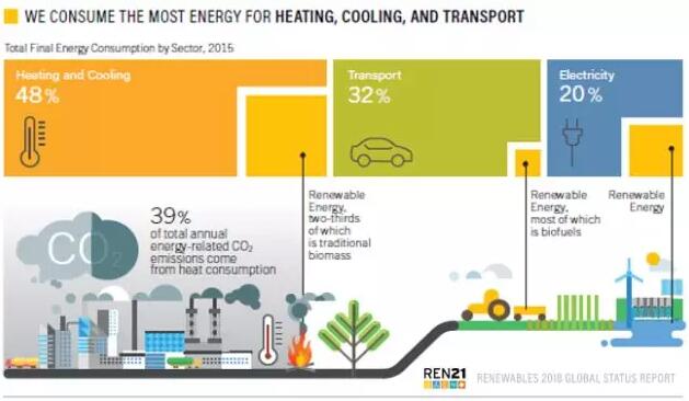 2017年可再生能源發(fā)電占到全球發(fā)電量凈增加值的70%。 這是現(xiàn)代歷史上可再生能源發(fā)電量增長最大的一年。然而占全球終端能源需求量80%的供熱、制冷和交通領(lǐng)域?qū)τ诳稍偕茉吹氖褂脜s遠遠落后于電力行業(yè)。昨日(6月4日)發(fā)布的《全球可再生能源現(xiàn)狀報告2018》(GSR)是對全球可再生能源發(fā)展最全面的年度綜述。