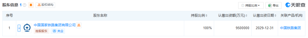 股東信息顯示,該公司由中國國家鐵路集團有限公司全資持股。