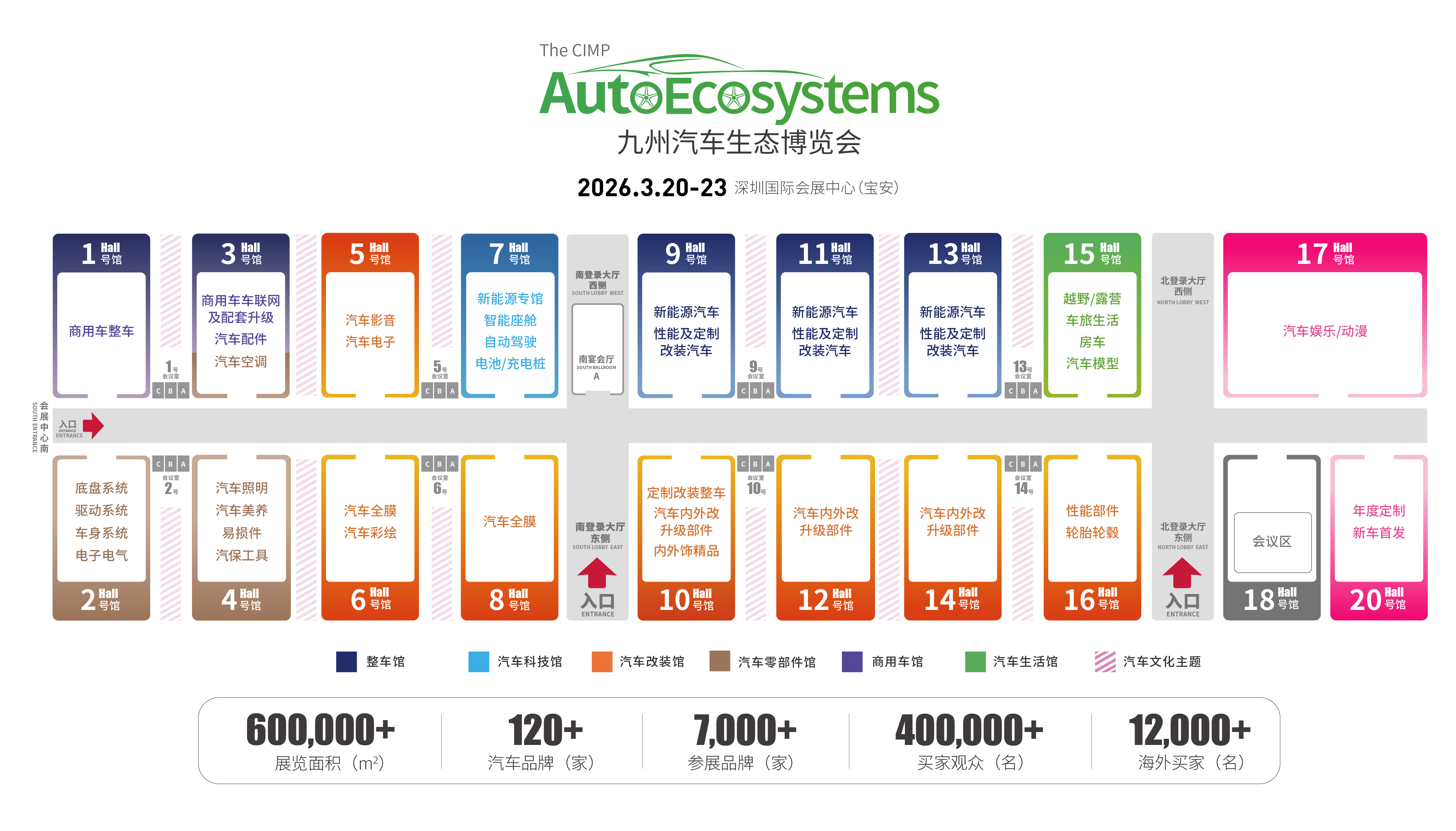 作為全球第一個(gè)汽車全產(chǎn)業(yè)鏈生態(tài)展貿(mào)平臺(tái),九州汽車生態(tài)博覽會(huì)全面涵蓋乘用車與商用車市場(chǎng),已成為全球整車發(fā)布、汽車科技、汽車零部件、汽車改裝、汽車文化的新產(chǎn)品、新技術(shù)年度首發(fā)平臺(tái)。2026年展會(huì)規(guī)模擴(kuò)容至60萬(wàn)平方米,匯聚全球7000+優(yōu)質(zhì)品牌及超40萬(wàn)名專業(yè)觀眾。