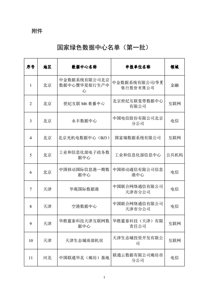附件:國家綠色數據中心名單(第一批)