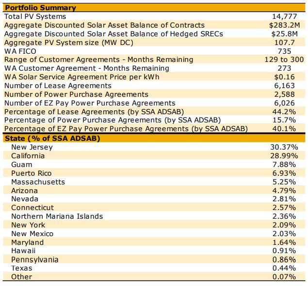 投資組合評級的驅(qū)動因素包括“特殊”拖欠率介于0.3%和0.4%之間,平均FICO得分為735,以及對Sunnova管理團隊的強大能力感知。負面考慮因素包括關(guān)島凈計量的未來可能變化(該投資組合的7.2%),仍在不斷變化的波多黎各市場的復雜性,2013年以后的歷史缺乏,地理集中度過高以及太陽能系統(tǒng)降級速度超過預期的風險。