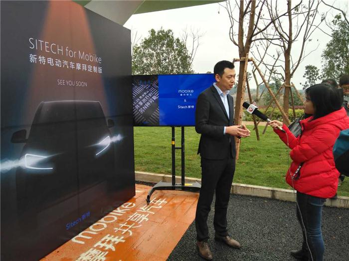 圖為:SITECH新特電動(dòng)汽車工業(yè)有限公司CEO先越先生在上線儀式現(xiàn)場接受采訪